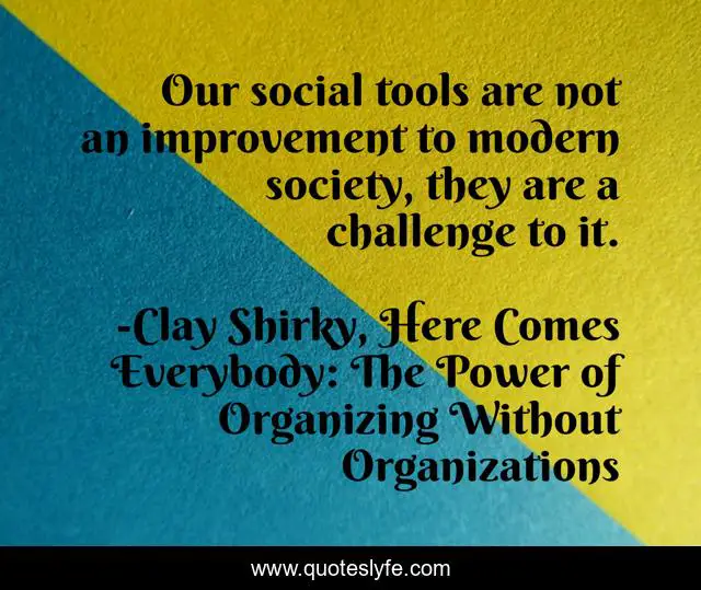 "Clay Shirky, Here Comes Everybody: The Power of Organizing Without Organizations Quotes." Quoteslyfe.com, 2025. Mon. 08 Dec. 2025. <https://www.quoteslyfe.com/quote/Our-social-tools-are-not-an-improvement-236859>.