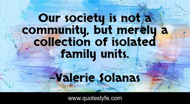 This page presents the quote "Our society is not a community, but merely a collection of isolated family units.". Author of this quote is Valerie Solanas. This quote is about family, community, isolated,.