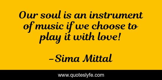 This page presents the quote "Our soul is an instrument of music if we choose to play it with love!". Author of this quote is Sima Mittal. This quote is about love, soul, music, inspirational, enthusiasm, life-philosophy, affection,.