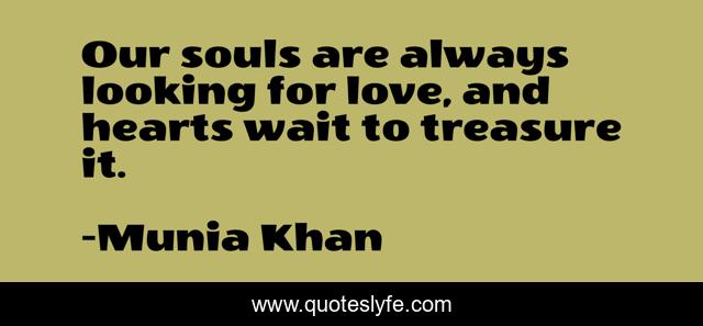 This page presents the quote "Our souls are always looking for love, and hearts wait to treasure it.". Author of this quote is Munia Khan. This quote is about philosophy-of-heart, spiritual, love, heart, always, treasure, soul, souls, spirituality,.