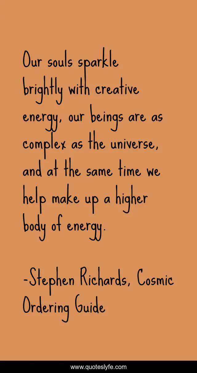 "Stephen Richards, Cosmic Ordering Guide Quotes." Quoteslyfe.com, 2025. Mon. 08 Dec. 2025. <https://www.quoteslyfe.com/quote/Our-souls-sparkle-brightly-with-creative-energy-77580>.