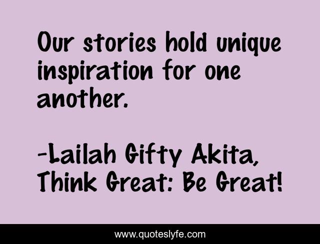 "Lailah Gifty Akita, Think Great: Be Great! Quotes." Quoteslyfe.com, 2025. Mon. 08 Dec. 2025. <https://www.quoteslyfe.com/quote/Our-stories-hold-unique-inspiration-for-one-98811>.