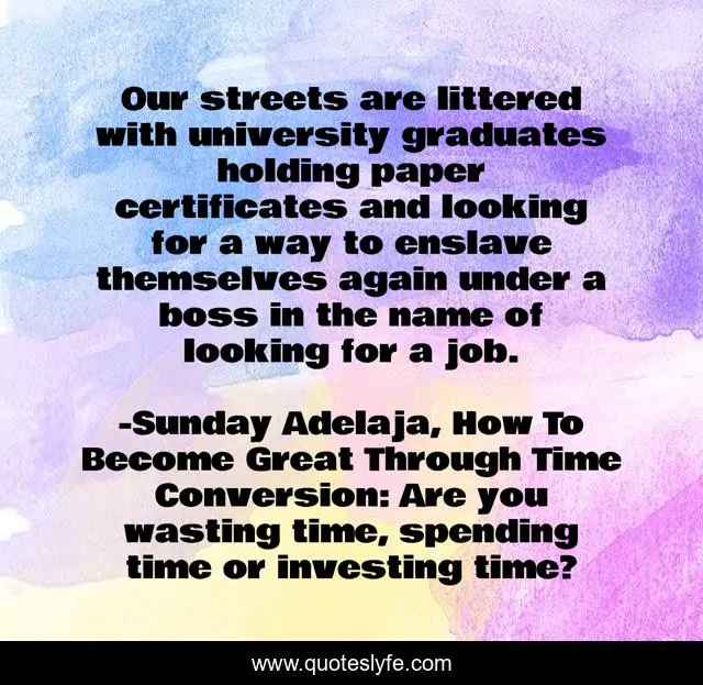 "Sunday Adelaja, How To Become Great Through Time Conversion: Are you wasting time, spending time or investing time? Quotes." Quoteslyfe.com, 2025. Sun. 07 Dec. 2025. <https://www.quoteslyfe.com/quote/Our-streets-are-littered-with-university-graduates-38890>.