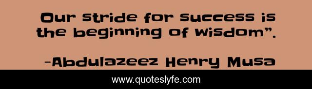 This page presents the quote "Our stride for success is the beginning of wisdom”.". Author of this quote is Abdulazeez Henry Musa. .