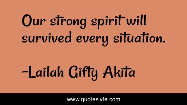 "Lailah Gifty Akita Quotes." Quoteslyfe.com, 2025. Tue. 09 Dec. 2025. <https://www.quoteslyfe.com/quote/Our-strong-spirit-will-survived-every-situation-139448>.