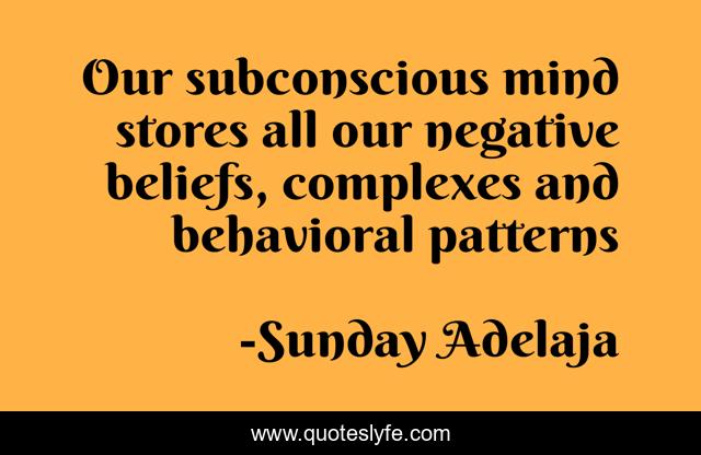 This page presents the quote "Our subconscious mind stores all our negative beliefs, complexes and behavioral patterns". Author of this quote is Sunday Adelaja. This quote is about life, goal, pattern, mind, mission, calling, subconscious, stored, negative,.