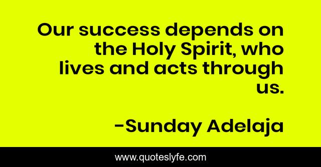 This page presents the quote "Our success depends on the Holy Spirit, who lives and acts through us.". Author of this quote is Sunday Adelaja. .