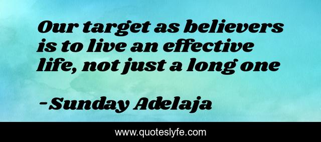 This page presents the quote "Our target as believers is to live an effective life, not just a long one". Author of this quote is Sunday Adelaja. This quote is about love, people, money, principles, employment, worship, impact, living, jobless,.