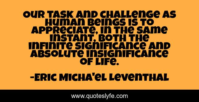 "Eric Micha'el Leventhal Quotes." Quoteslyfe.com, 2025. Fri. 05 Dec. 2025. <https://www.quoteslyfe.com/quote/Our-task-and-challenge-as-human-beings-118132>.