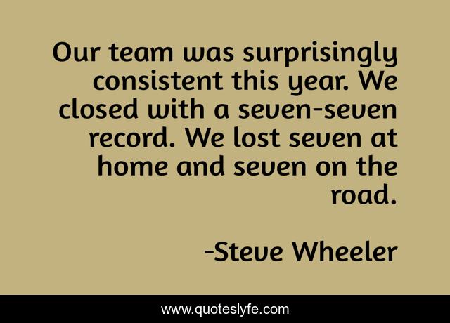 This page presents the quote "Our team was surprisingly consistent this year. We closed with a seven-seven record. We lost seven at home and seven on the road.". Author of this quote is Steve Wheeler. .