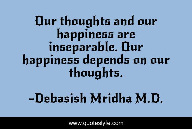 "Debasish Mridha M.D. Quotes." Quoteslyfe.com, 2025. Sun. 07 Dec. 2025. <https://www.quoteslyfe.com/quote/Our-thoughts-and-our-happiness-are-inseparable-136158>.