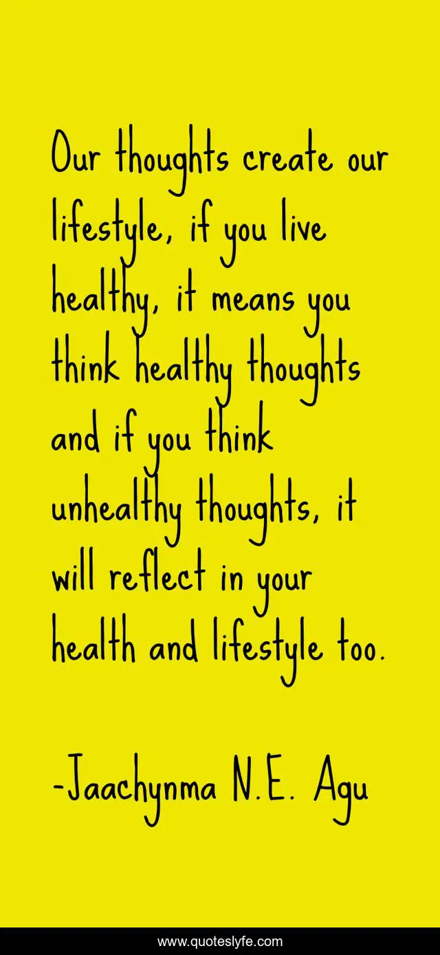 Our thoughts create our lifestyle, if you live healthy, it means you think healthy thoughts and if you think unhealthy thoughts, it will reflect in your health and lifestyle too.