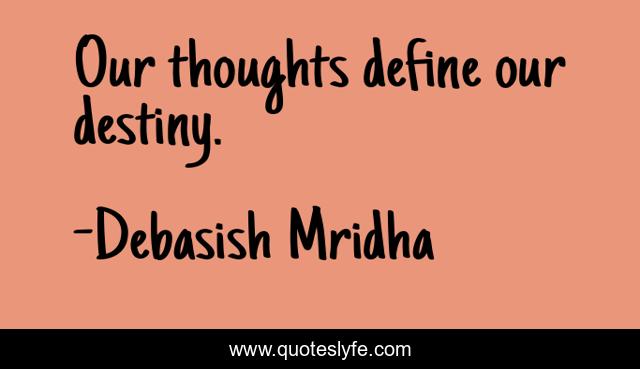 This page presents the quote "Our thoughts define our destiny.". Author of this quote is Debasish Mridha. This quote is about destiny, philosophy, debasish-mridha, quotes, inspirational, enthusiasm, debasish-mridha-m-d, thoughts, thoughts-define-our-destiny,.