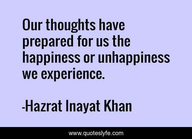 This page presents the quote "Our thoughts have prepared for us the happiness or unhappiness we experience.". Author of this quote is Hazrat Inayat Khan. This quote is about cognitive-behavior-therapy, the-law-of-attraction, sufism,.