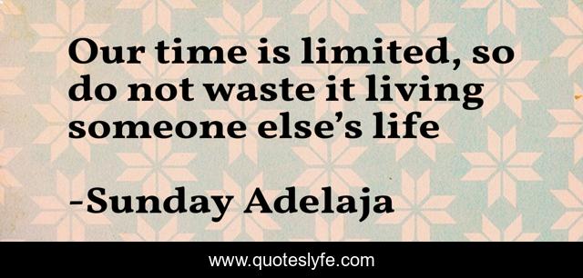 This page presents the quote "Our time is limited, so do not waste it living someone else’s life". Author of this quote is Sunday Adelaja. This quote is about limited, life, people, purpose, time, waste,.