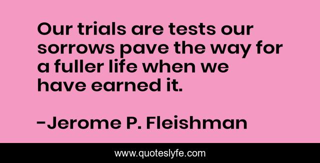 This page presents the quote "Our trials are tests our sorrows pave the way for a fuller life when we have earned it.". Author of this quote is Jerome P. Fleishman. .