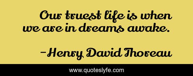 This page presents the quote "Our truest life is when we are in dreams awake.". Author of this quote is Henry David Thoreau. This quote is about dreams, truth,.