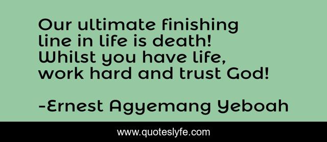 This page presents the quote "Our ultimate finishing line in life is death! Whilst you have life, work hard and trust God!". Author of this quote is Ernest Agyemang Yeboah. This quote is about make-each-day-count, life, death, work-hard, do-your-best, wisdom, don-t-give-up, inspirational, enthusiasm,.