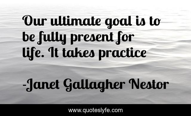 This page presents the quote "Our ultimate goal is to be fully present for life. It takes practice". Author of this quote is Janet Gallagher Nestor. This quote is about spirituality, presence, mindfulness, self-help,.