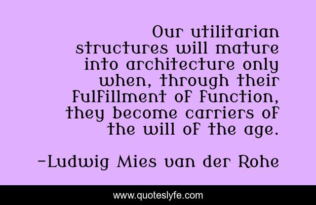 "Ludwig Mies van der Rohe Quotes." Quoteslyfe.com, 2025. Sat. 13 Dec. 2025. <https://www.quoteslyfe.com/quote/Our-utilitarian-structures-will-mature-into-architecture-299390>.