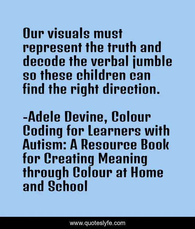 "Adele Devine, Colour Coding for Learners with Autism: A Resource Book for Creating Meaning through Colour at Home and School Quotes." Quoteslyfe.com, 2025. Fri. 05 Dec. 2025. <https://www.quoteslyfe.com/quote/Our-visuals-must-represent-the-truth-and-185485>.