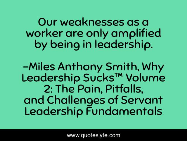 "Miles Anthony Smith, Why Leadership Sucks™ Volume 2: The Pain, Pitfalls, and Challenges of Servant Leadership Fundamentals Quotes." Quoteslyfe.com, 2025. Sun. 14 Dec. 2025. <https://www.quoteslyfe.com/quote/Our-weaknesses-as-a-worker-are-only-211705>.