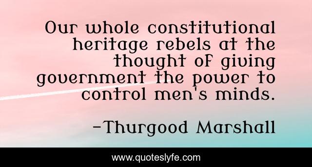 This page presents the quote "Our whole constitutional heritage rebels at the thought of giving government the power to control men's minds.". Author of this quote is Thurgood Marshall. This quote is about politics, men, government,.