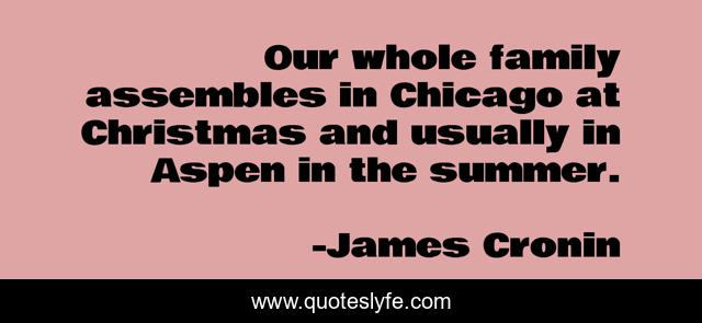 This page presents the quote "Our whole family assembles in Chicago at Christmas and usually in Aspen in the summer.". Author of this quote is James Cronin. This quote is about summer, family, chicago,.
