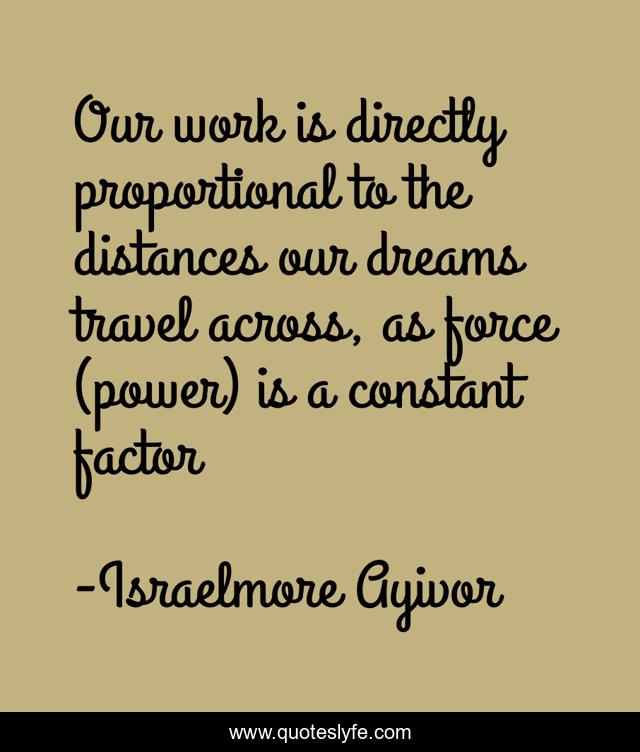 Our work is directly proportional to the distances our dreams travel across, as force (power) is a constant factor