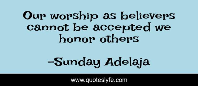 This page presents the quote "Our worship as believers cannot be accepted we honor others". Author of this quote is Sunday Adelaja. This quote is about kingdom, life, money, love, honoring-god, people, believers, god, work,.