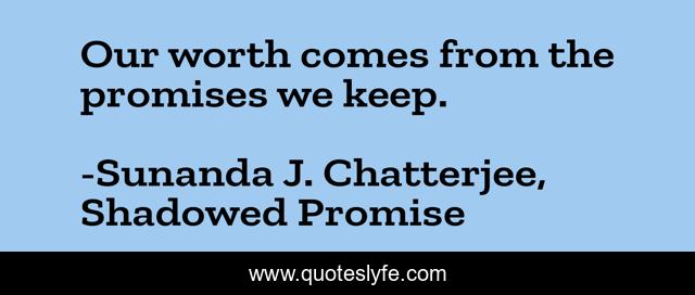 "Sunanda J. Chatterjee, Shadowed Promise Quotes." Quoteslyfe.com, 2025. Sat. 06 Dec. 2025. <https://www.quoteslyfe.com/quote/Our-worth-comes-from-the-promises-we-253570>.