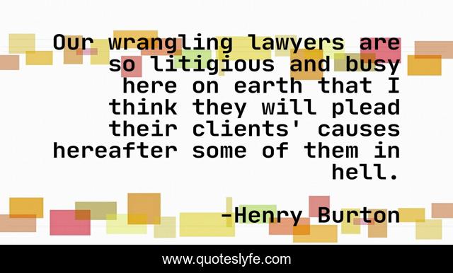 This page presents the quote "Our wrangling lawyers are so litigious and busy here on earth that I think they will plead their clients' causes hereafter some of them in hell.". Author of this quote is Henry Burton. .