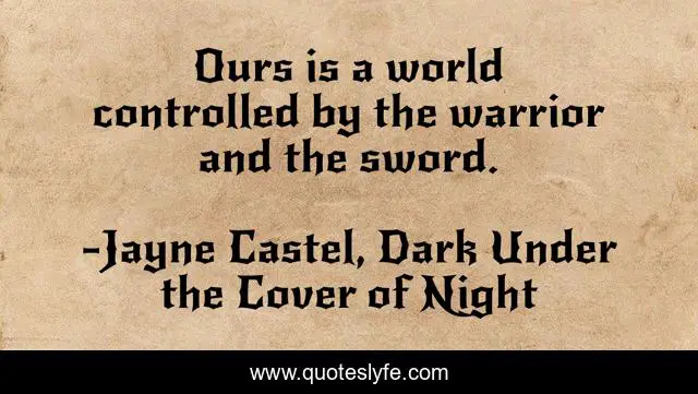 This page presents the quote "Ours is a world controlled by the warrior and the sword.". Author of this quote is Jayne Castel, Dark Under the Cover of Night. This quote is about warriors, honor,.
