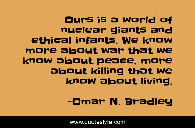 This page presents the quote "Ours is a world of nuclear giants and ethical infants. We know more about war that we know about peace, more about killing that we know about living.". Author of this quote is Omar N. Bradley. This quote is about world, peace,.