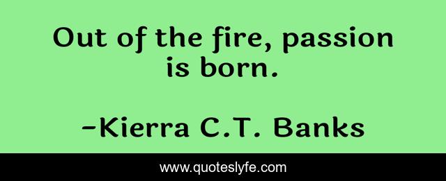 This page presents the quote "Out of the fire, passion is born.". Author of this quote is Kierra C.T. Banks. This quote is about love, challenge, challenges, journey, passion, inspirational, enthusiasm, affection,.