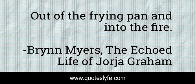 "Brynn Myers, The Echoed Life of Jorja Graham Quotes." Quoteslyfe.com, 2025. Mon. 15 Dec. 2025. <https://www.quoteslyfe.com/quote/Out-of-the-frying-pan-and-into-219538>.