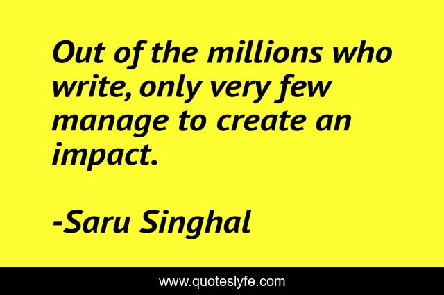 This page presents the quote "Out of the millions who write, only very few manage to create an impact.". Author of this quote is Saru Singhal. This quote is about author, writing,.