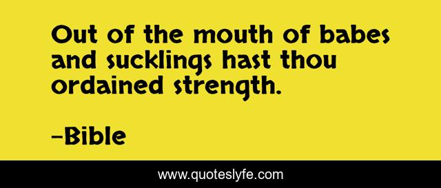 This page presents the quote "Out of the mouth of babes and sucklings hast thou ordained strength.". Author of this quote is Bible. .