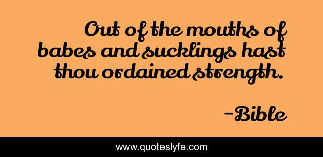 This page presents the quote "Out of the mouths of babes and sucklings hast thou ordained strength.". Author of this quote is Bible. This quote is about children, childhood,.
