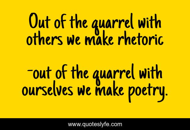"out of the quarrel with ourselves we make poetry. Quotes." Quoteslyfe.com, 2025. Fri. 05 Dec. 2025. <https://www.quoteslyfe.com/quote/Out-of-the-quarrel-with-others-we-24411>.