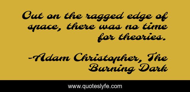 This page presents the quote "Out on the ragged edge of space, there was no time for theories.". Author of this quote is Adam Christopher, The Burning Dark. This quote is about space, theories,.