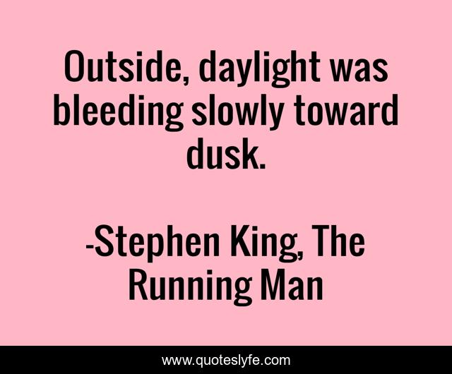 "Stephen King, The Running Man Quotes." Quoteslyfe.com, 2025. Sun. 07 Dec. 2025. <https://www.quoteslyfe.com/quote/Outside-daylight-was-bleeding-slowly-toward-dusk-254688>.