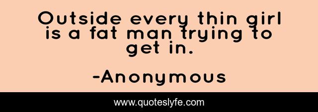 This page presents the quote "Outside every thin girl is a fat man trying to get in.". Author of this quote is Anonymous. This quote is about men, women,.