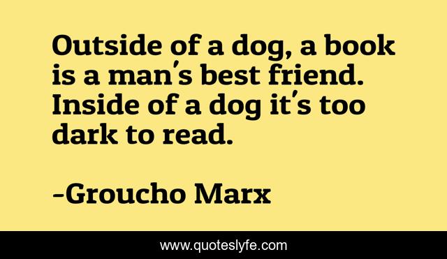 This page presents the quote "Outside of a dog, a book is a man's best friend. Inside of a dog it's too dark to read.". Author of this quote is Groucho Marx. This quote is about pet, best friend, dog,.
