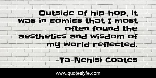This page presents the quote "Outside of hip-hop, it was in comics that I most often found the aesthetics and wisdom of my world reflected.". Author of this quote is Ta-Nehisi Coates. This quote is about world, outside, hip-hop,.
