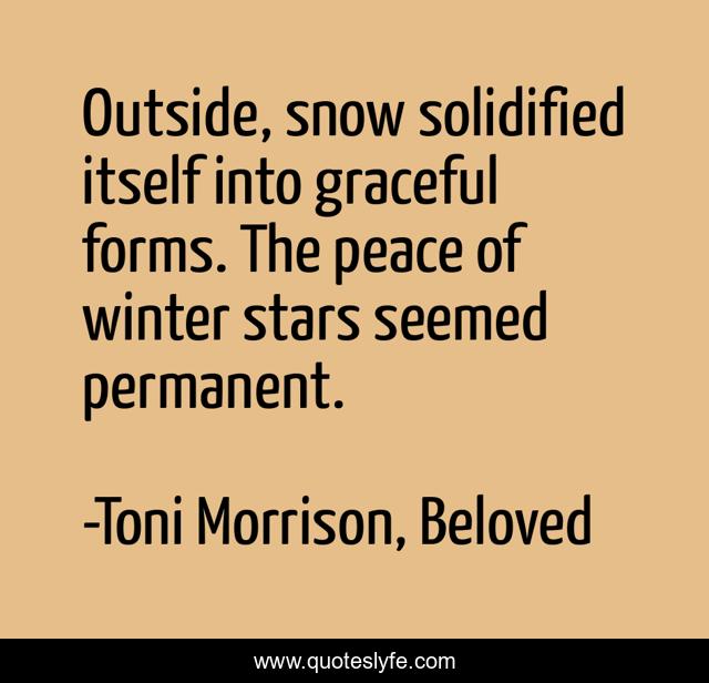 "Toni Morrison, Beloved Quotes." Quoteslyfe.com, 2025. Fri. 05 Dec. 2025. <https://www.quoteslyfe.com/quote/Outside-snow-solidified-itself-into-graceful-forms-73821>.