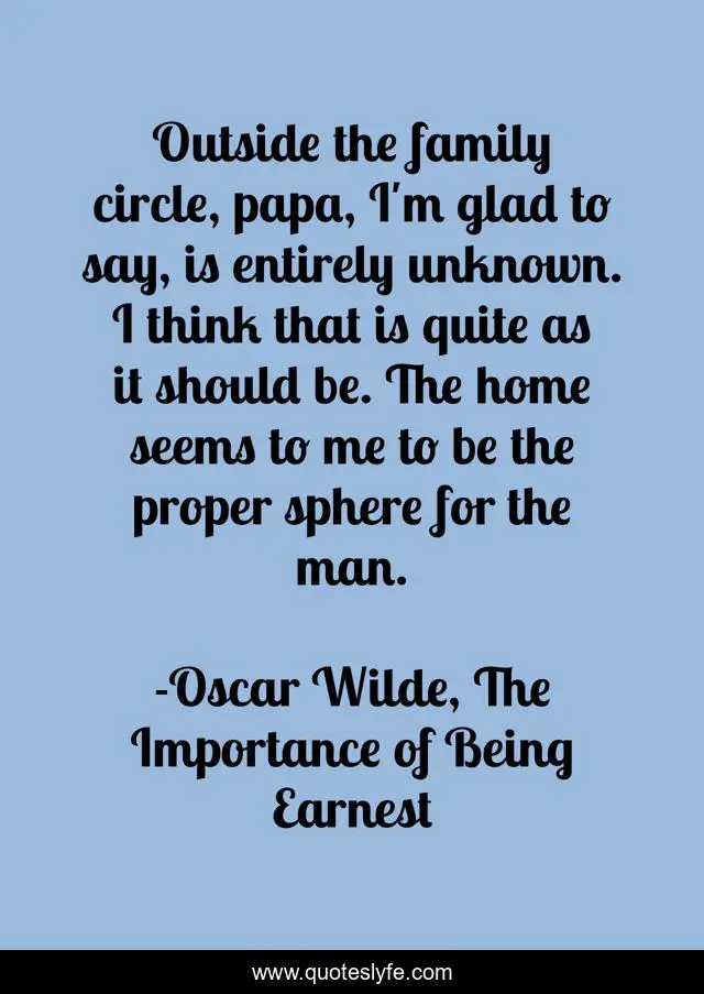 "Oscar Wilde, The Importance of Being Earnest Quotes." Quoteslyfe.com, 2025. Tue. 09 Dec. 2025. <https://www.quoteslyfe.com/quote/Outside-the-family-circle-papa-I-m-101971>.