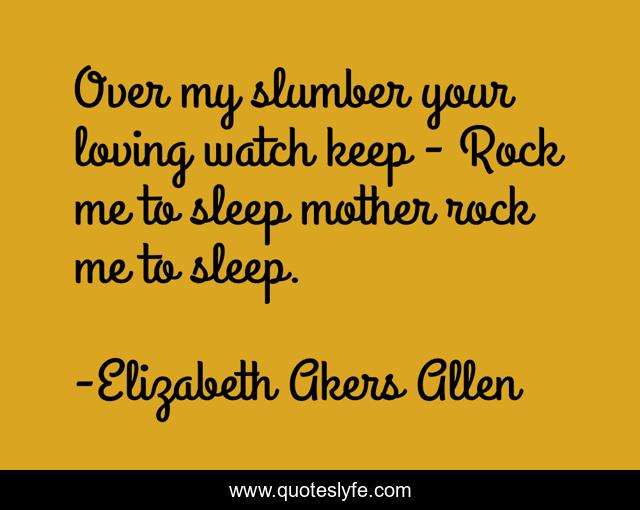 This page presents the quote "Over my slumber your loving watch keep - Rock me to sleep mother rock me to sleep.". Author of this quote is Elizabeth Akers Allen. .