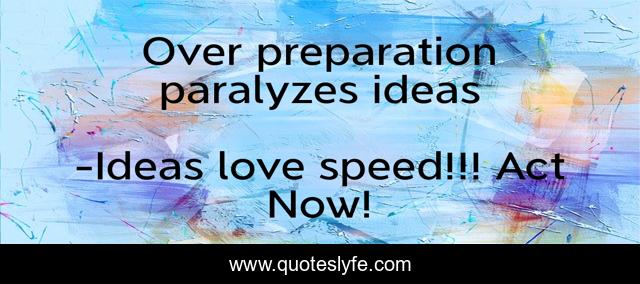 This page presents the quote "Over preparation paralyzes ideas". Author of this quote is Ideas love speed!!! Act Now!. .
