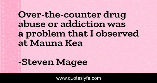 This page presents the quote "Over-the-counter drug abuse or addiction was a problem that I observed at Mauna Kea". Author of this quote is Steven Magee. This quote is about observer, astronomical, astronomer, astrobiology, abusive-relationships, abusers, abuse-of-power, drug-addiction, oberservation,.